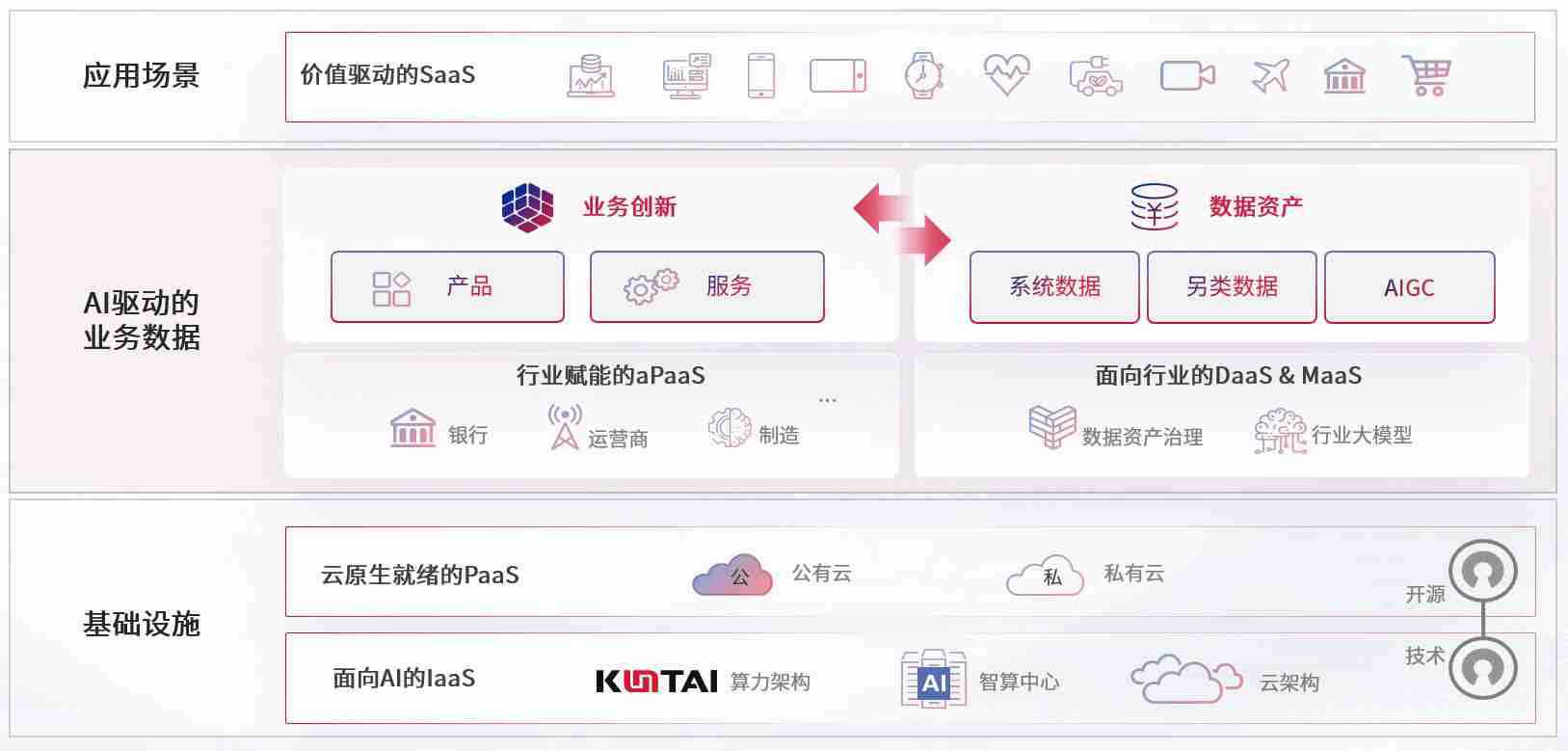 数字时代,,,,围绕企业数字化转型的关键要素,,,Z6尊龙时凯数码开创性的提出数云融合战略和技术体系框架,,着力在云原生、、数字原生、、AI原生和信创产业上架构产品和服务能力,,,为处在不同数字化转型阶段的快消零售、、、汽车、、、、金融、、医疗、、、政企、、、教育、、运营商等行业客户提供泛在的敏捷IT能力和融合的数据驱动能力,,,,构建跨界融合创新的数字业务场景和新业务模式,,,助力企业级客户建立面向未来的核心能力和竞争优势,,全面推动社会的数字化、、、、智能化转型升级。。